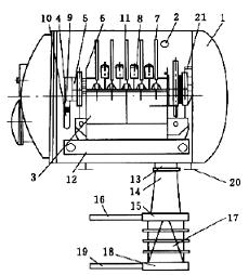 行星式加壓過濾機(jī):其煤漿槽內(nèi)裝有帶6個過濾輥的旋轉(zhuǎn)主軸,每個輥上都固定有過濾部件。這些過濾輥在其軸上轉(zhuǎn)動,并沿圓周軌道運(yùn)動,周期性地浸沒在煤漿內(nèi),第一臺試驗樣機(jī)于1986年研制成功,但只推廣應(yīng)用兩臺,以后未見報道。